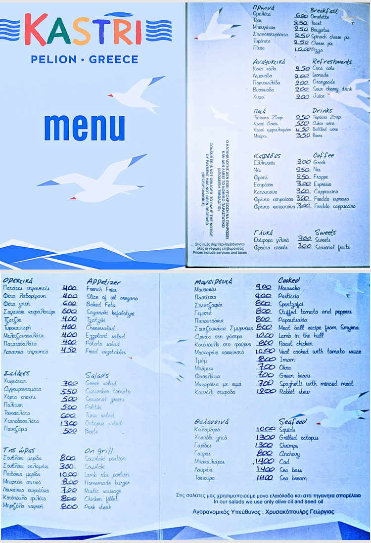 Bargeld mitnehmen! In Kastri und Umgebung gibt es keinen Bankomaten! Und generell kommt man hier mit Bargeld weiter als mit Karte. Sei vorbereitet, dass das Zimmer, Taxis in Skiathos, Taxiboot und div. Essen bar bezahlt werden müssen. Ein paar Restaurants nehmen Karte, aber es ist besser Bargeld dabeizuhaben, denn das wird überall hier am Pelion akzeptiert.