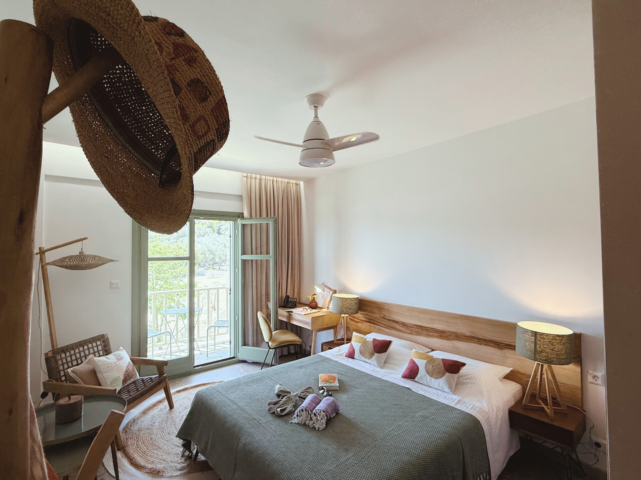 Η Δάφνη είναι ελληνική για τη δάφνη και μεταφέρει τη διαχρονική κομψότητα αυτού του ευρύχωρου καταφυγίου που σας δίνει χώρο για να αναπνεύσετε. Το μικρό μπαλκόνι προσφέρει καθαρή θέα στον κήπο με τα βότανα και προσφέρει την ευκαιρία να πάρετε μια βαθιά ανάσα μέσα στο πράσινο και τη φρεσκάδα στο δικό σας μπαλκόνι. Γεμίστε τις μπαταρίες σας στο άνετο queen-size κρεβάτι και απολαύστε τα απαλά αρώματα με τα οποία το ελληνικό βαμβάκι της ταπετσαρίας τυλίγει τις αισθήσεις σας.
